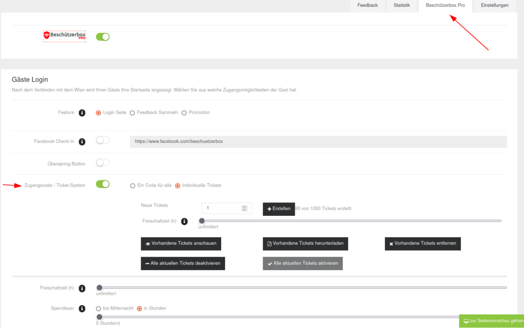 Mit unserem neuesten Cloud-Update können Sie nun individuelle Freischaltzeiten pro Ticket festlegen! Falls Sie also den WLAN-Zugang in einem Belohnungssystem für Kinder und Jugendliche anbieten oder aber je nach Alter unterschiedliche Onlinezeiten gewähren möchten, so haben Sie nun die Möglichkeit, das auch mit der Beschützerbox flexibel zu regeln.